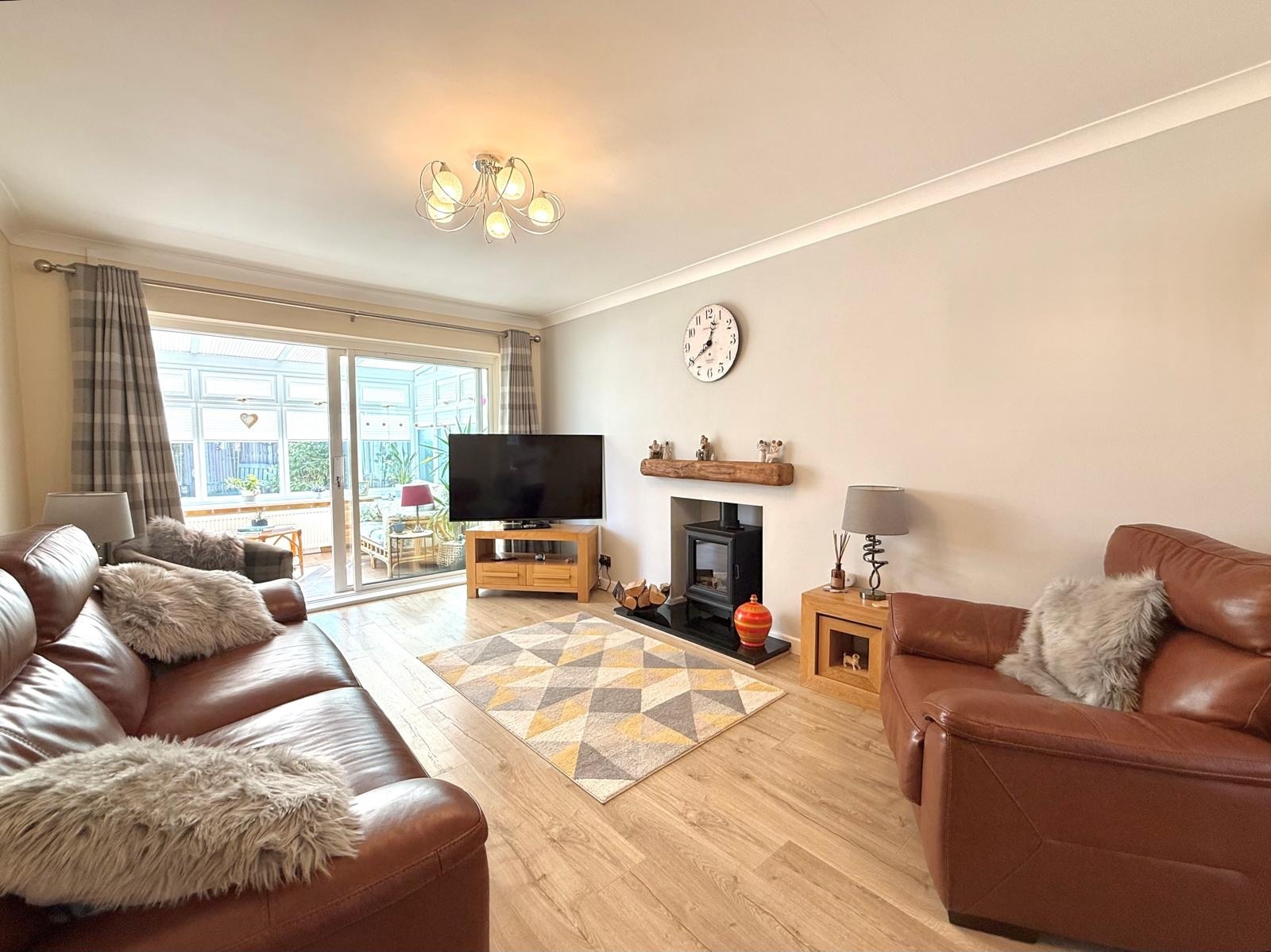 Greatly improved and stylishly presented throughout. The impressive living accommodation briefly comprises: Entrance hall, two bedrooms, a modern shower room, a spacious open plan living/dining room, conservatory & a modern kitchen which has a selection of integrated appliances.